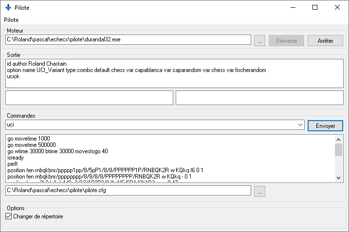 Personnellement je me sers de cette petite application pour déboguer mon moteur UCI, mais en fait elle peut servir dans d'autres contextes, pour dialoguer avec une application console qui fonctionne de la même façon qu'un moteurs d'échecs, c'est-à-dire qui reçoit plusieurs commandes successives et répond au fur et à mesure. Je crois qu'ExifTool, par exemple, fonctionne de cette façon.
