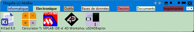 C'est une application ancienne que j'ai remise au goût du jour dont le but principal est de regrouper les applications et documents par catégories sans encombrer le bureau par une multitude d’icônes dans laquelle on a du mal à se retrouver.